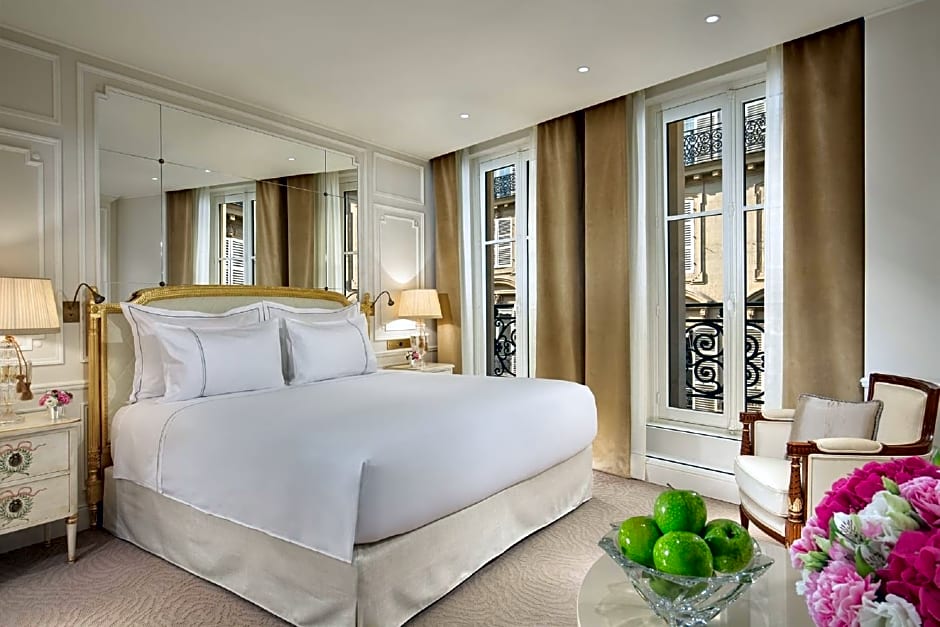 The Junior Suites Saint-Honoré are decorated in a classic style redesigned with subtle Italian touches and provide a bright interior. It provides a seating area and a dressing room. The marble bathroom features a shower and bathrobes. Possible request of balcony with view on the Eiffel tower (upon availability) with a supplement (100euros per night).